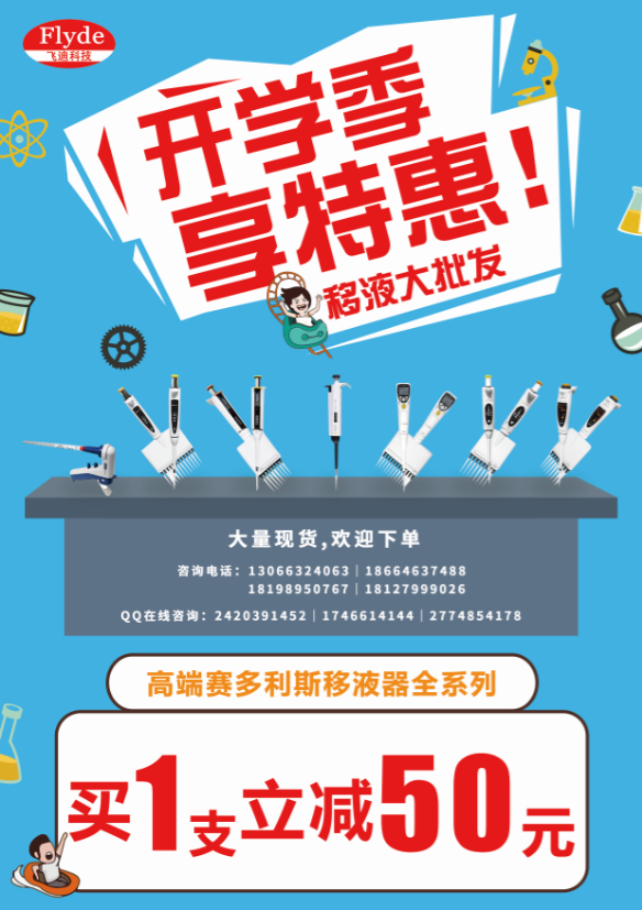 即日起特推出賽多利斯部分移液器,終端用戶買一減五十的活動,歡迎下單!