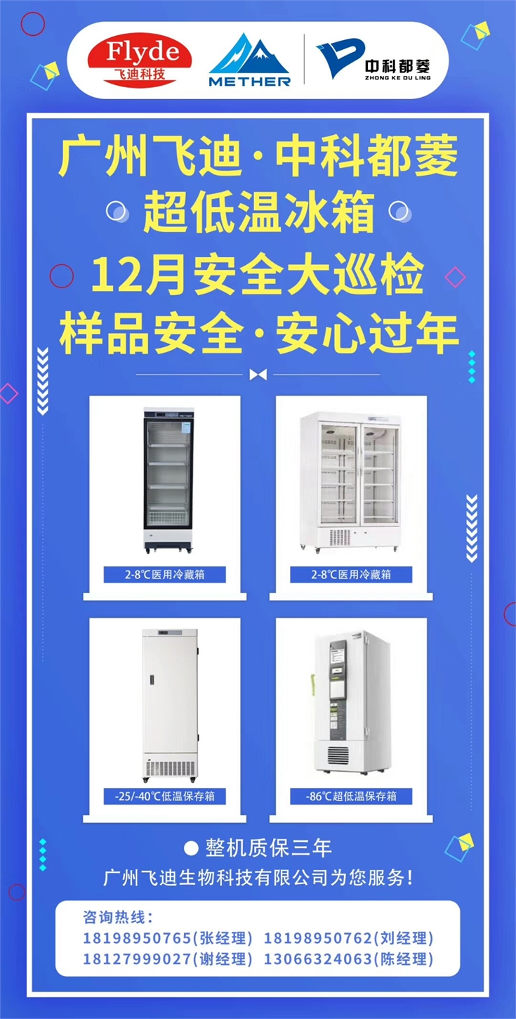 飛迪攜手代理品牌中科都菱將于12月在華南地區(qū)開展超低溫冰箱安全大巡檢服務,歡迎實驗室里有都菱冰箱的用戶們聯(lián)系飛迪售后,為您的樣品保駕護航,樣品安全,安心過大年!