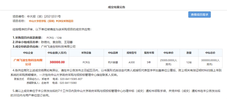 恭喜我司代理產(chǎn)品朗基A300在中山大學(xué)藥學(xué)院(深圳)PCR儀采購項目里中標。