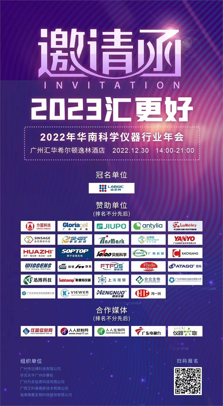 2022年華南科學儀器行業年會將于12月30日在廣州黃埔區匯華希爾頓酒店舉行,本次本次年會主題“2023匯更好!”,屆時將有500名同行相約黃埔,聚力前行!