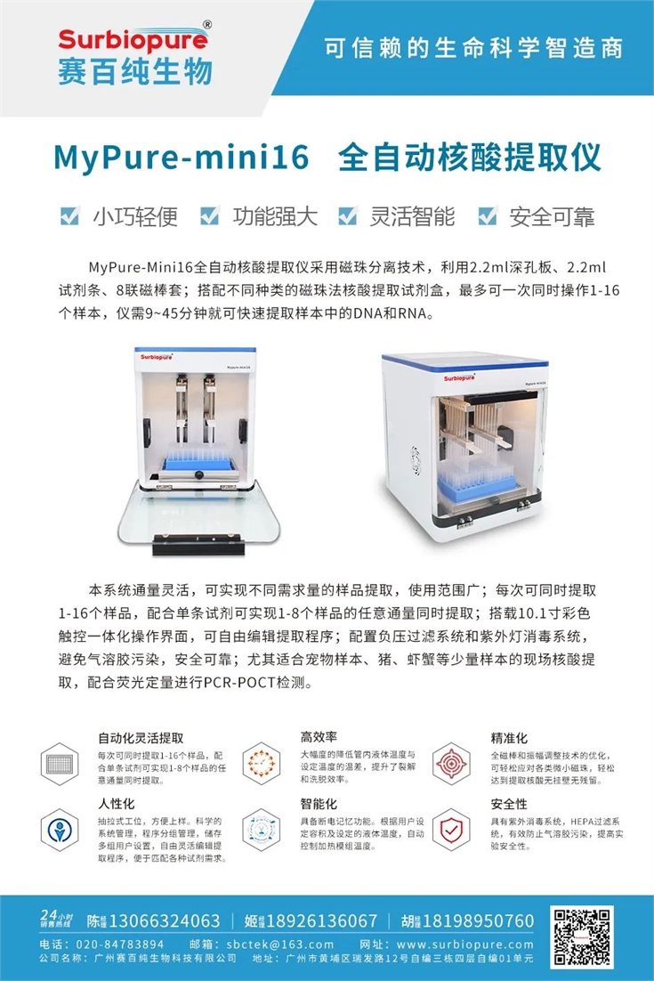 總之,賽百純這款mini16核酸提取儀 小巧輕便、功能強大、靈活智能、安全可靠。