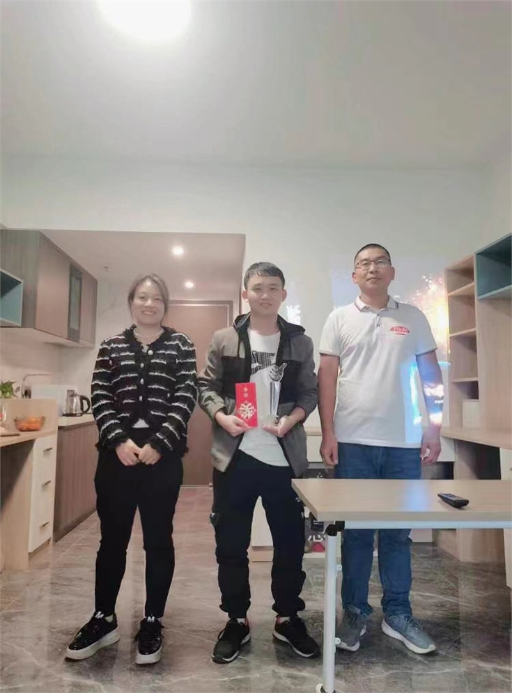 本次年會共頒發兩個獎項,優秀員工獎和銷售新星獎,以及給銷售部同事配備業務背包,祝愿他們2024賺大包。