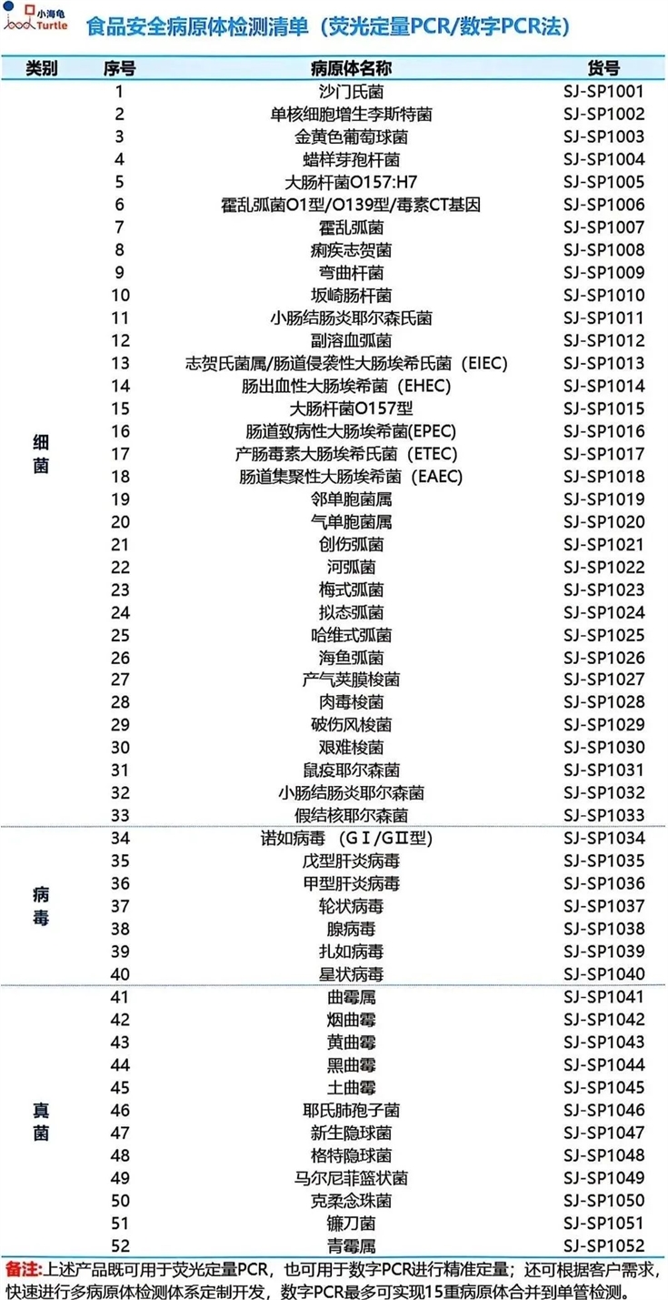 小海龜科技憑借全球領先的超多重數字 PCR 技術一管可檢測多達 15 種致病菌(含 50+ 種高危種類),檢測效率相較傳統方法大大提高尤其適用于多重致病菌污染樣本的快速定量檢測