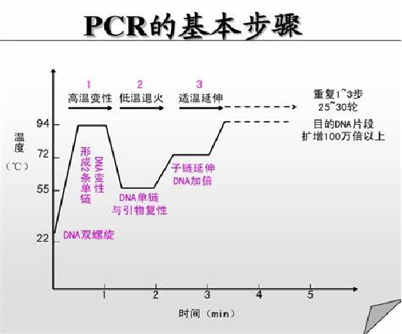 變性:(90℃-96℃):雙鏈DNA模板在熱作用下,氫鍵斷裂,形成單鏈DNA。