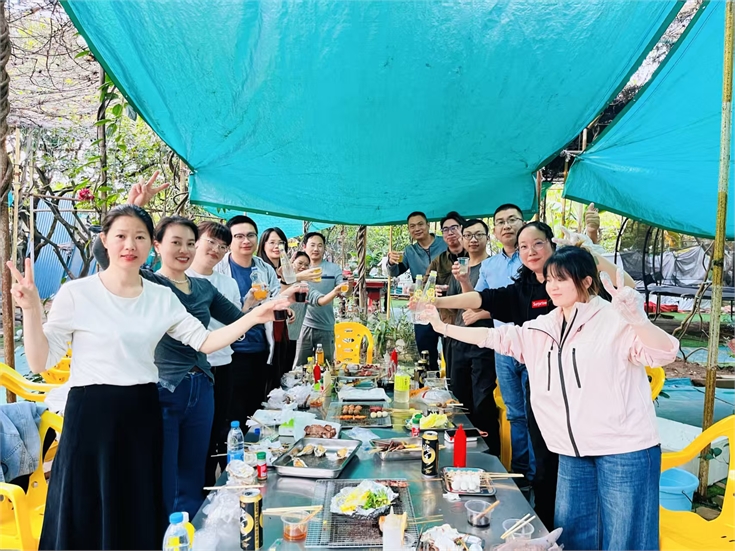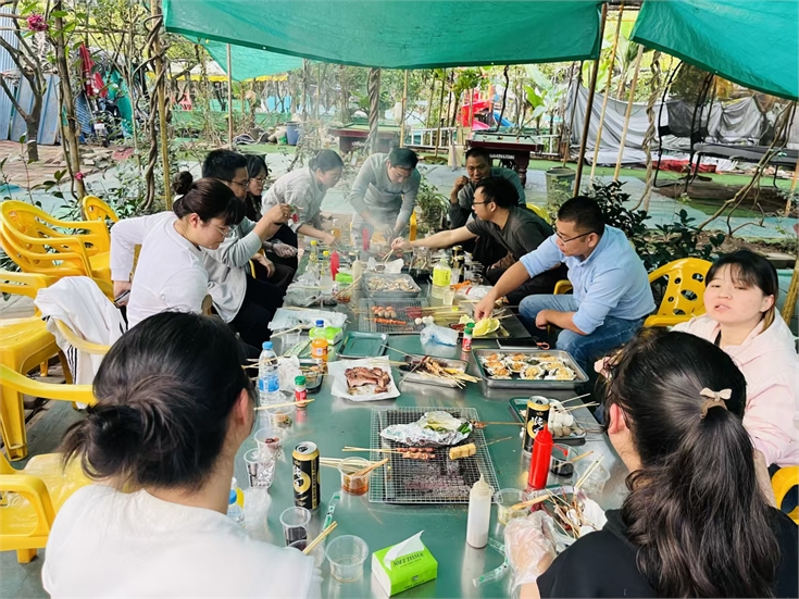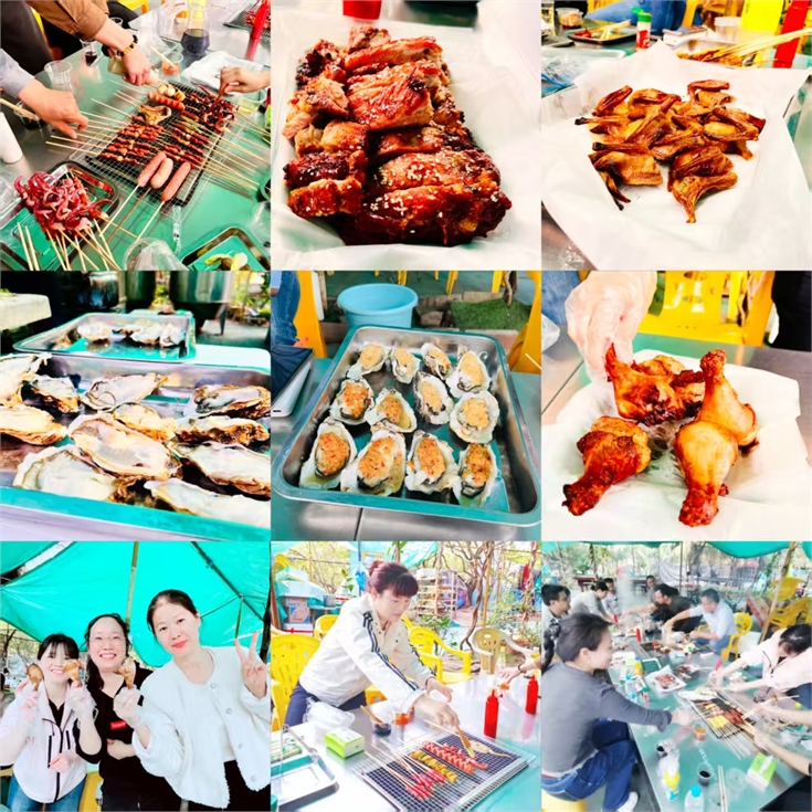 傍晚時分,平日里忙碌于案頭的同事們瞬間化身為“燒烤大師”。在裊裊炊煙中,大家品嘗著自己親手制作的美食,暢談工作與生活,歡聲笑語伴隨著食物的香氣彌漫在整個營地,工作中的壓力在此刻得到了徹底的釋放。