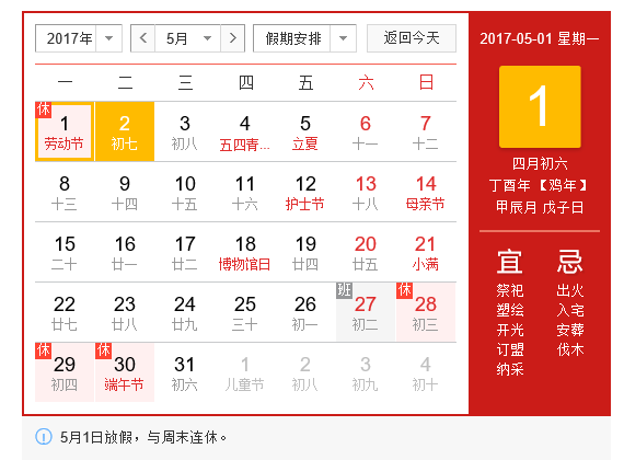 5月2日(周二)正常上班。