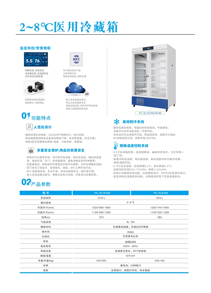 醫用冷藏箱(智慧物聯系列)具有溫濕雙控、智慧物聯、精準穩定、人性化設計、高效制冷系統、多重安全保護,物品存放更安全、精確溫度控制系統等特點。